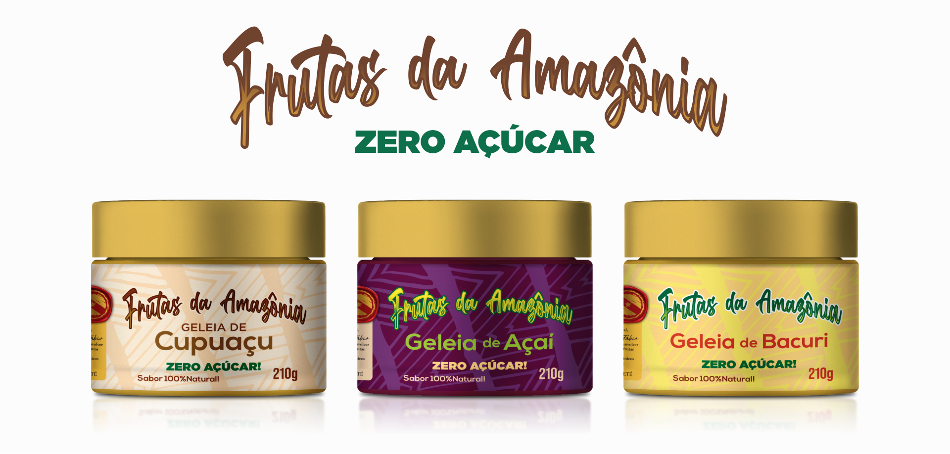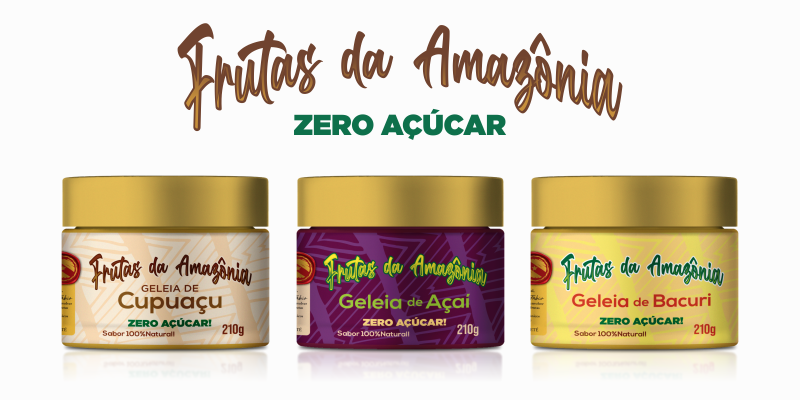 A nossa linha de geleias FRUTAS DA AMAZÔNIA vem aqui na versão ZERO AÇÚCAR, que atende desde o público fitness até as pessoas diabéticas, que poderão degustar o sabor mágico das frutas genuinamente brasileiras sem se preocupar. Nesta versão, além de ser totalmente isenta de qualquer tipo de açúcar, também é livre de glúten, lactose, corantes e conservantes, sendo presente somente a polpa das nossas frutas preferidas, cuidadosamente selecionadas para representar os sabores de nossa região: cupuaçu, bacuri e açaí.
